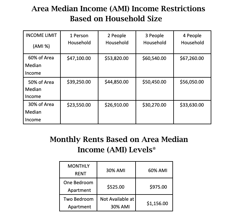 *The numbers listed in the chart are based on 2024 rents. Rents are subject to change slightly based on current allowable rents at the time of construction completion.